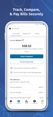 ● Report Outages Instantly: Experiencing a power outage or other service issue? Use the app to report outages quickly and receive real-time updates on the status and estimated restoration times.